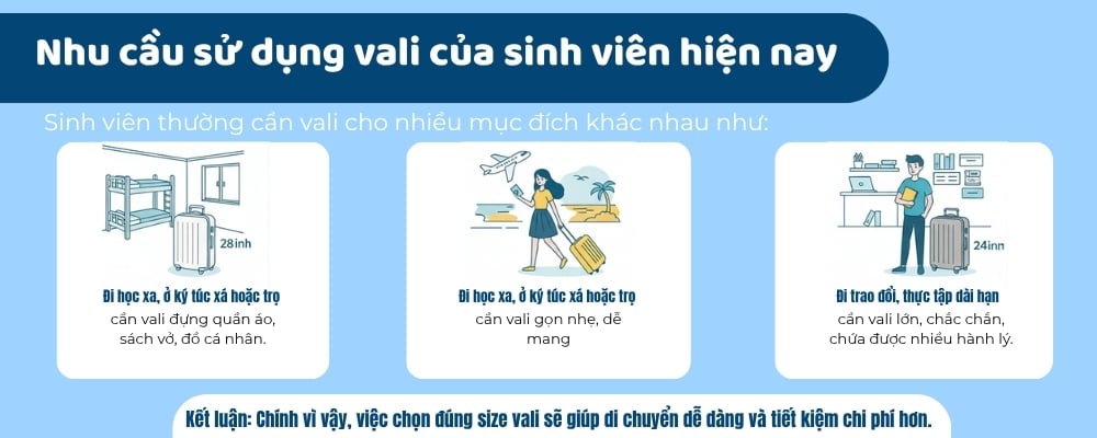 Gợi ý chọn size vali theo mục đích sử dụng của sinh viên