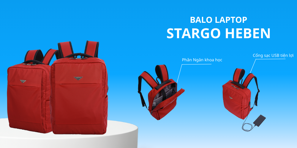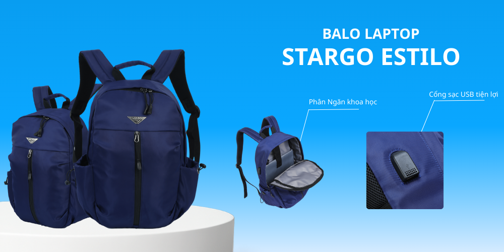 Những chiếc balo này được thiết kế từ chất liệu cao cấp, chống nước, có cổng sạc USB ngoài tích hợp kết nối dây bên trong, giúp bạn sạc thiết bị mà không cần mở balo. Ngoài ra ngăn chứa laptop riêng biệt và đệm hơi thoáng khí khiến Stargo trở thành đơn lựa chọn lý tưởng cho cả sinh viên, dân công sở hỗn người thường xuyên di chuyển.
