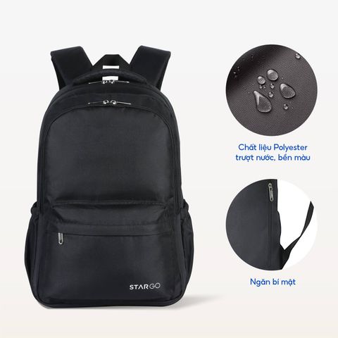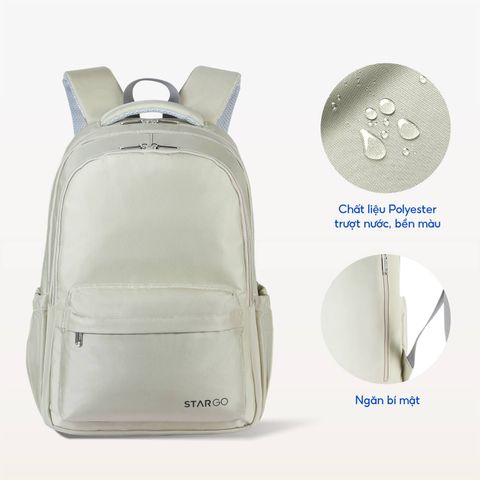 Stargo Famil được chế tác từ Polyester trượt nước cao cấp, giúp bạn tự tin di chuyển dù nắng gắt hay mưa bất chợt. Nước không bám, bụi không đọng, vệ sinh thì dễ như một cái vuốt nhẹ. Bên trong balo là lớp vải lót 3 tính năng: chống thấm – hút ẩm – kháng khuẩn, bảo vệ laptop và các món đồ công nghệ như một “lá chắn vô hình”.