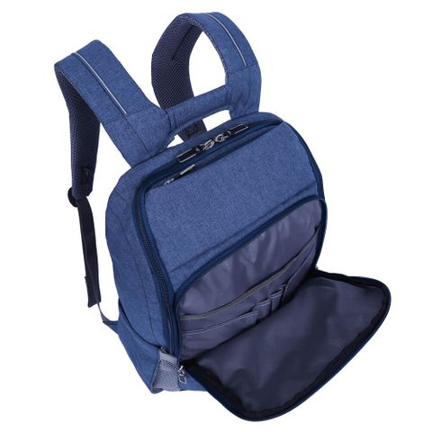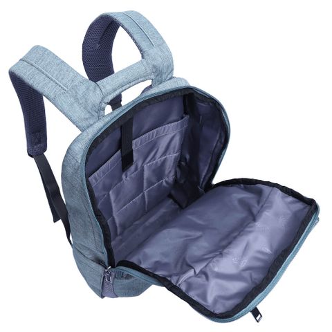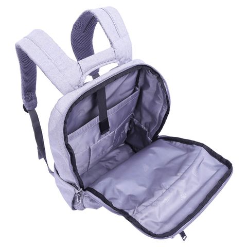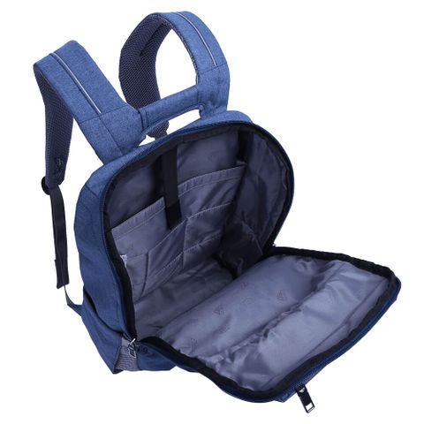 - Bên trong ngăn chính trang bị vách ngăn đệm mút dày, êm ái kết hợp đai dán cố định phù hợp với các dòng laptop hoặc máy tính bảng 15.6 inch. Phần còn lại của ngăn chính là nơi mang theo quần áo khi đi chơi hoặc tài liệu khi đi học, đi làm.