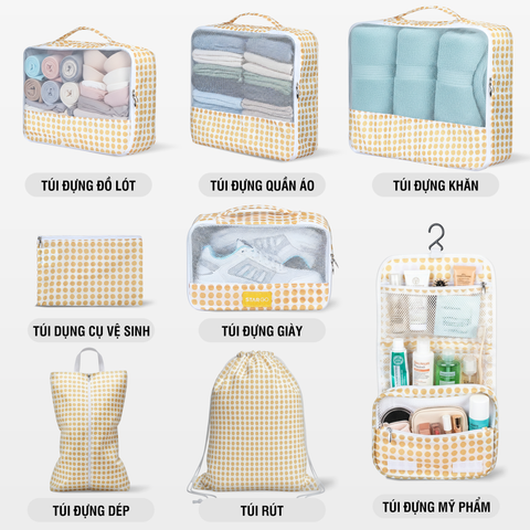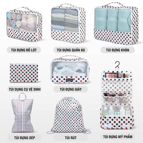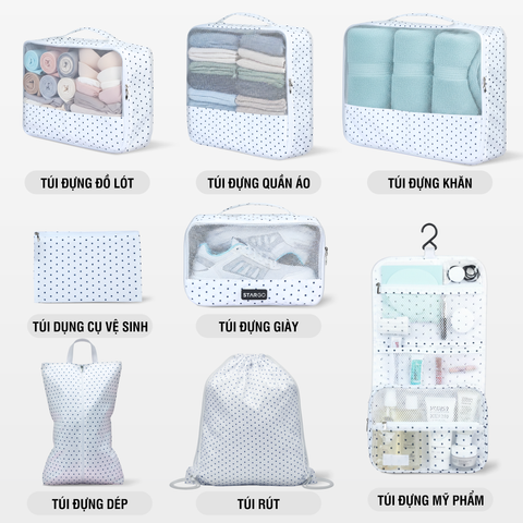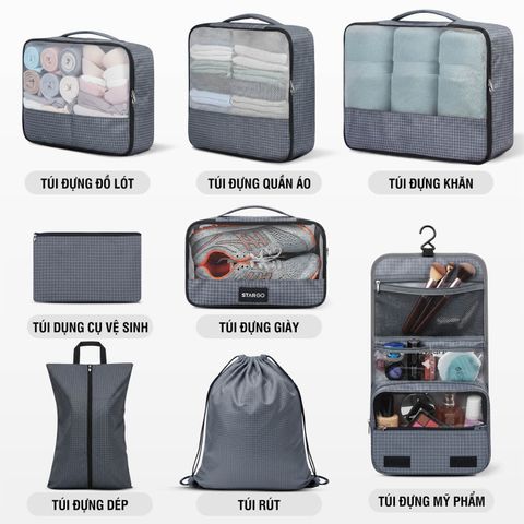Bộ phụ kiện 8 túi Stargo Arreda không chỉ là món đồ tiện ích cho những ai yêu thích sự ngăn nắp mà còn là lựa chọn hoàn hảo cho các tín đồ du lịch, công tác hay tập gym. Nhẹ – bền – đẹp – tiện dụng, Stargo Arreda giúp bạn sắp xếp mọi thứ khoa học, tiết kiệm không gian và thời gian, để mỗi hành trình luôn bắt đầu trong sự thoải mái và tràn đầy năng lượng.