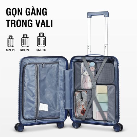 Kích thước tổng thể chỉ 27 x 11 x 17 cm, bộ túi Stargo Arreda được thiết kế khoa học giúp bạn dễ dàng sắp xếp vào vali, balo hay tủ quần áo mà không chiếm nhiều diện tích. Mỗi túi có công năng riêng biệt, đảm bảo mọi món đồ đều có “vị trí” riêng – từ quần áo, khăn tắm đến mỹ phẩm hay giày dép.
