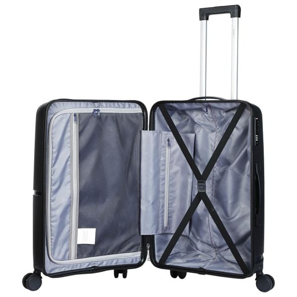 Vali Stargo Illus đáp ứng kích thước tiêu chuẩn của các hãng hàng không quốc tế. Nội thất sang trọng với ngăn chính siêu rộng rãi, giúp bạn dễ dàng đựng và sắp xếp hành lý một cách tiện lợi kết hợp vách ngăn chống đổ hành lý, đai chữ X co giãn.